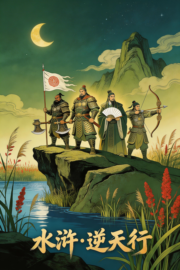 这部文图叙事类游戏改编自中国古典四大名著《水浒传》,作者是元末明初的施耐庵先生(约1296年-约1370年)。中国有句古话叫 “少不读水浒”,大概就是说人年少的时候不适合过早阅读《水浒传》;核心担心是怕年轻人只看到表面的江湖义气与打斗,养成好勇斗狠的性格;但这并不是《水浒》真正的核心精神。更多的留个悬念……最近太忙了,好几个项目,之后要旅游出差一部分,游戏已经做好PC端了,原以为今晚就能上架搞定,后来发现工作量还是有的,先上个海报广告吧,等之后上架好了再给大家详细介绍。